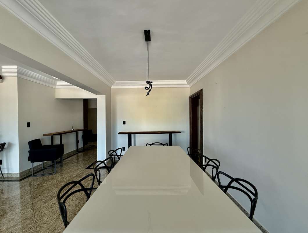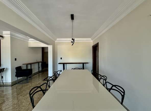 Cod.: 896Venha morar em um espetacular apartamento bem amplo e com armários planejados em todos os ambientes, com 4 suítes com armários planejados, mais um escritório com armários, varanda com vista livre para o mar que percorre o apartamento por inteiro, e mais churrasqueira na varanda, sala 4 ambientes, lavabo, cozinha com armários planejados, área de serviço e despensa com armários.