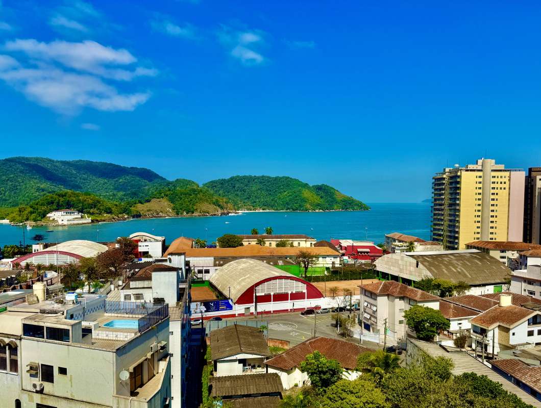 Localizado na Ponta da Praia, 2 quadras da praia, perto de comércio em geral.