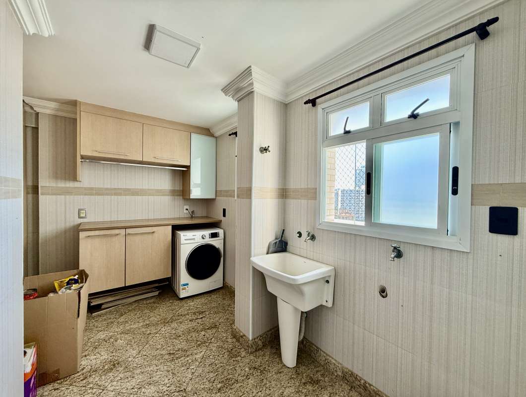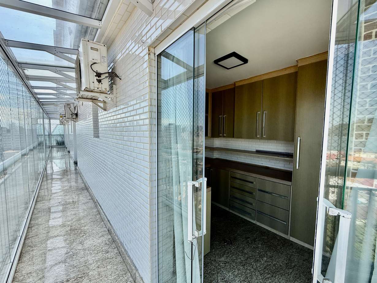 Cod.: 896Venha morar em um espetacular apartamento bem amplo e com armários planejados em todos os ambientes, com 4 suítes com armários planejados, mais um escritório com armários, varanda com vista livre para o mar que percorre o apartamento por inteiro, e mais churrasqueira na varanda, sala 4 ambientes, lavabo, cozinha com armários planejados, área de serviço e despensa com armários.