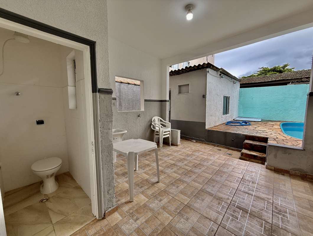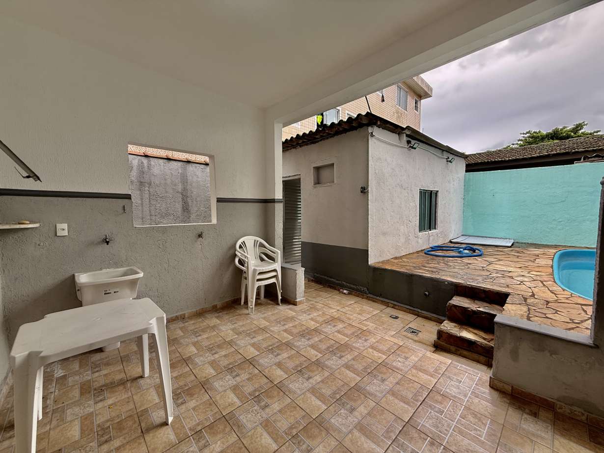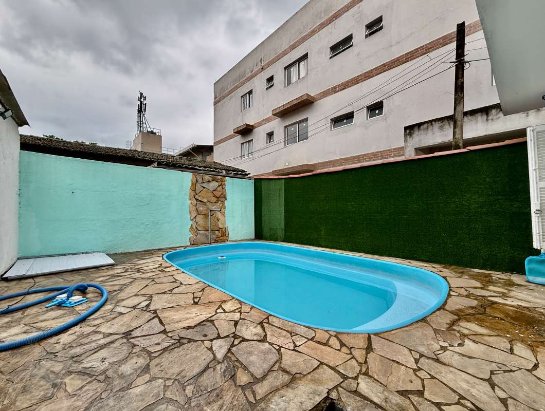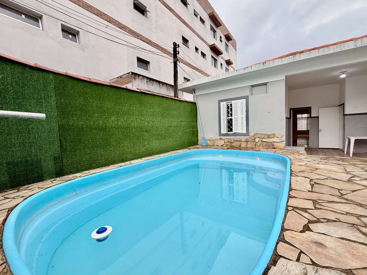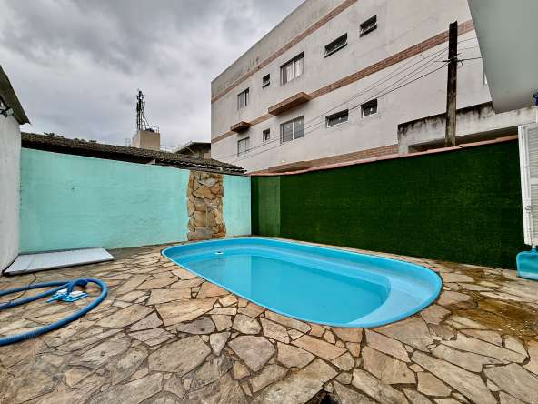 Cod.: 937Venha morar em uma casa térrea com amplo quintal na frente da casa e mais piscina aos fundos da casa, e internamente a casa possui 2 quartos, sendo um dos quartos bem amplo com mais 1 ambiente, sala 2 ambientes, banheiro social e cozinha. Na parte externa com área de serviço, mais 1 banheiro, quintal com piscina e uma edícula com mais 1 quarto.