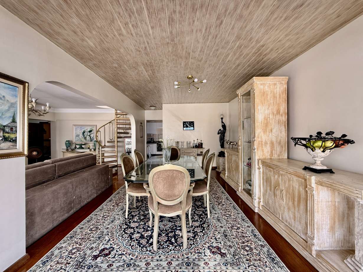Venha morar em uma cobertura ampla na quadra da praia, localizada no bairro da Aparecida, com 4 quartos, sendo 1 suíte, banheiro social, sala ampla com 2 ambientes e varanda, lavabo, cozinha com armários, área de serviço com quarto e banheiro de serviço. Ja no 2º piso com mais uma sala 2 ambientes, bar, banheiro social e depósito, e na parte externa com amplo quintal com piscina e churrasqueira.