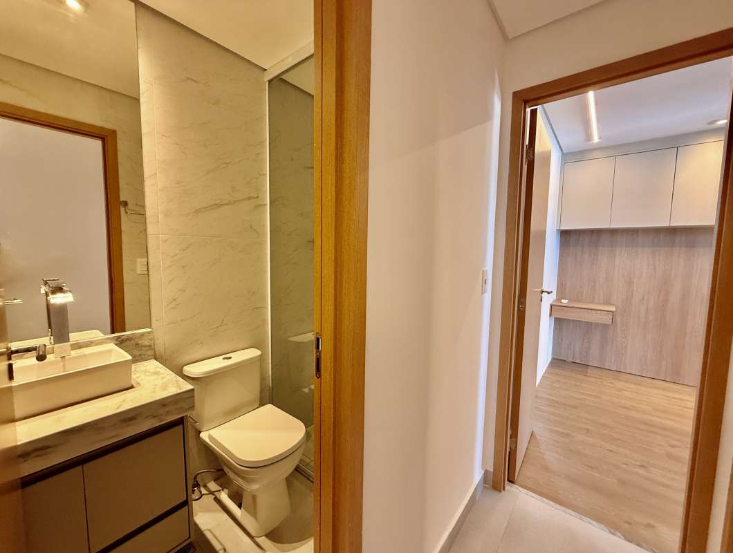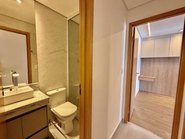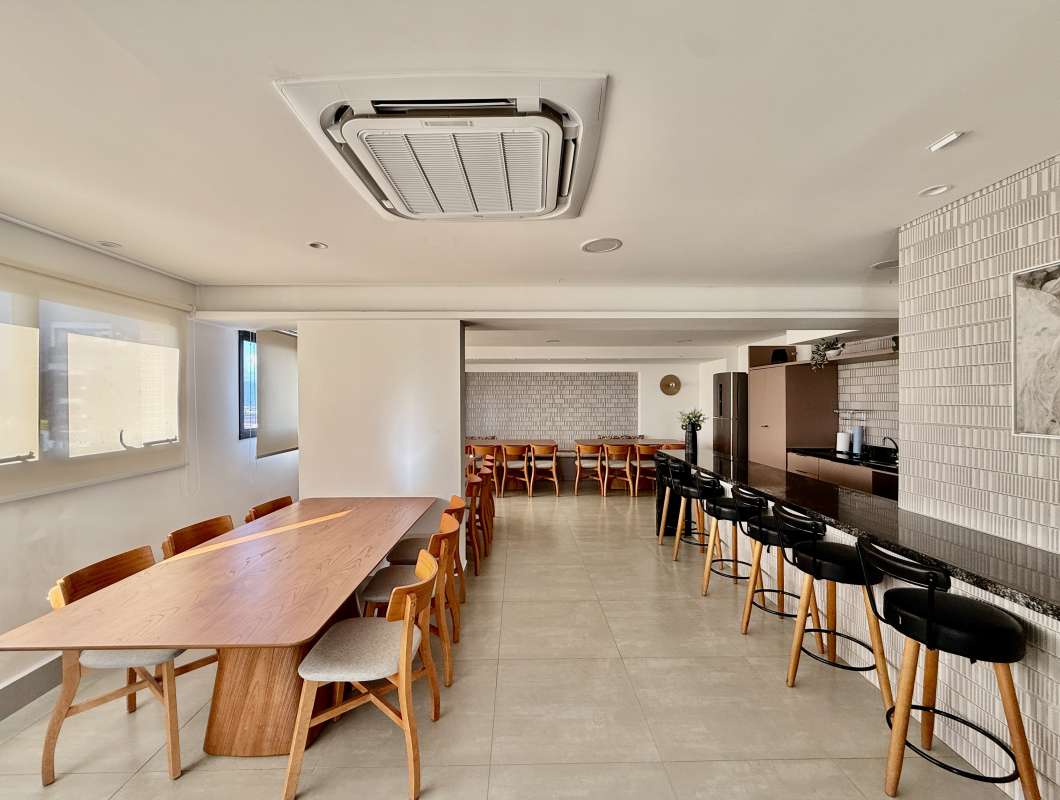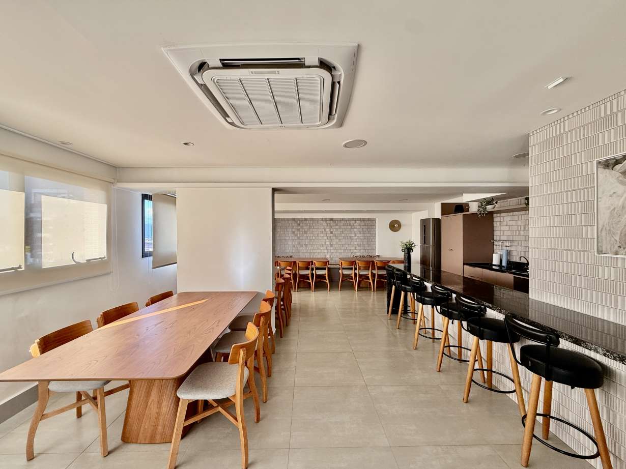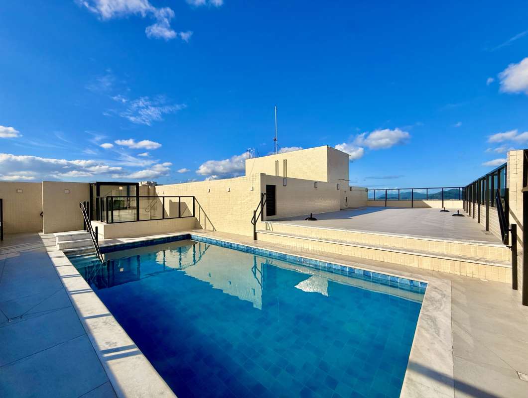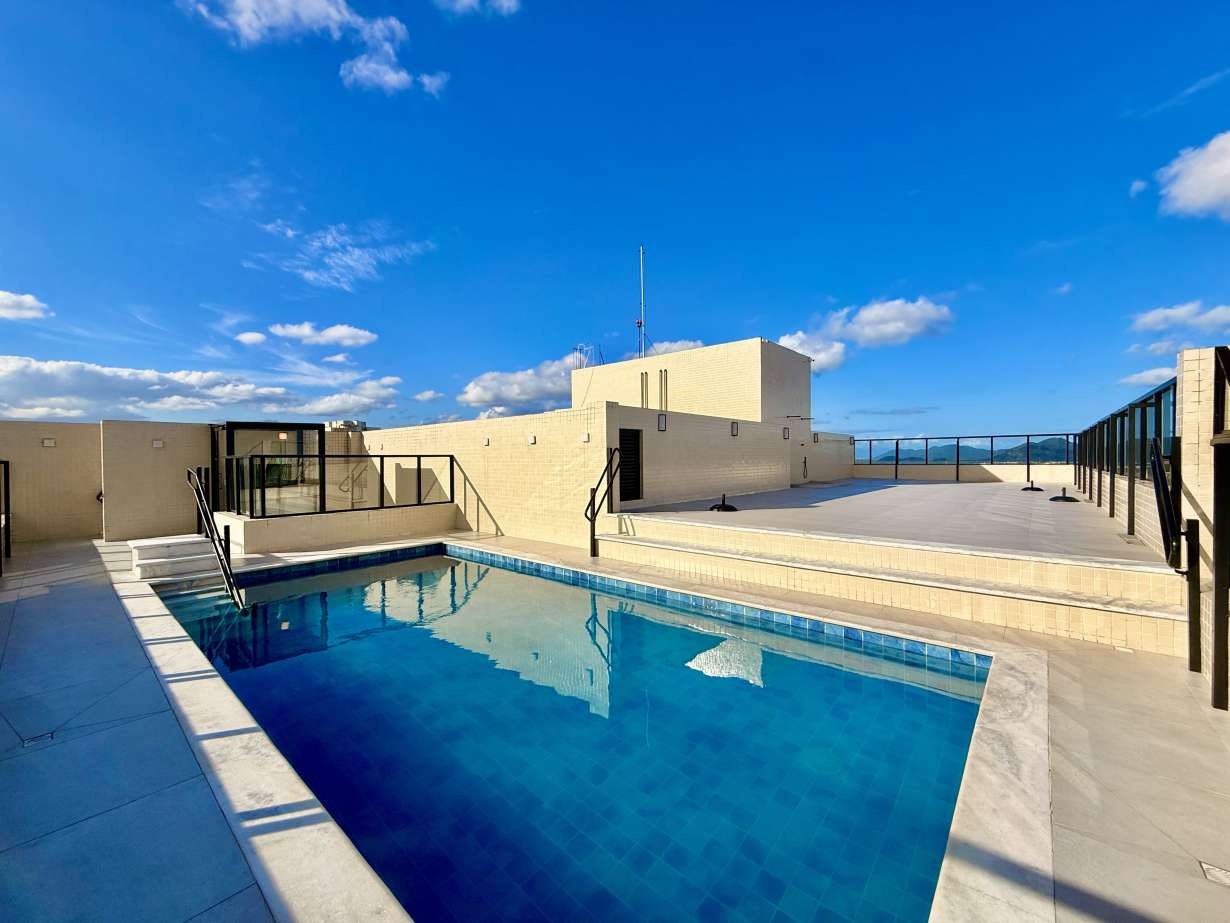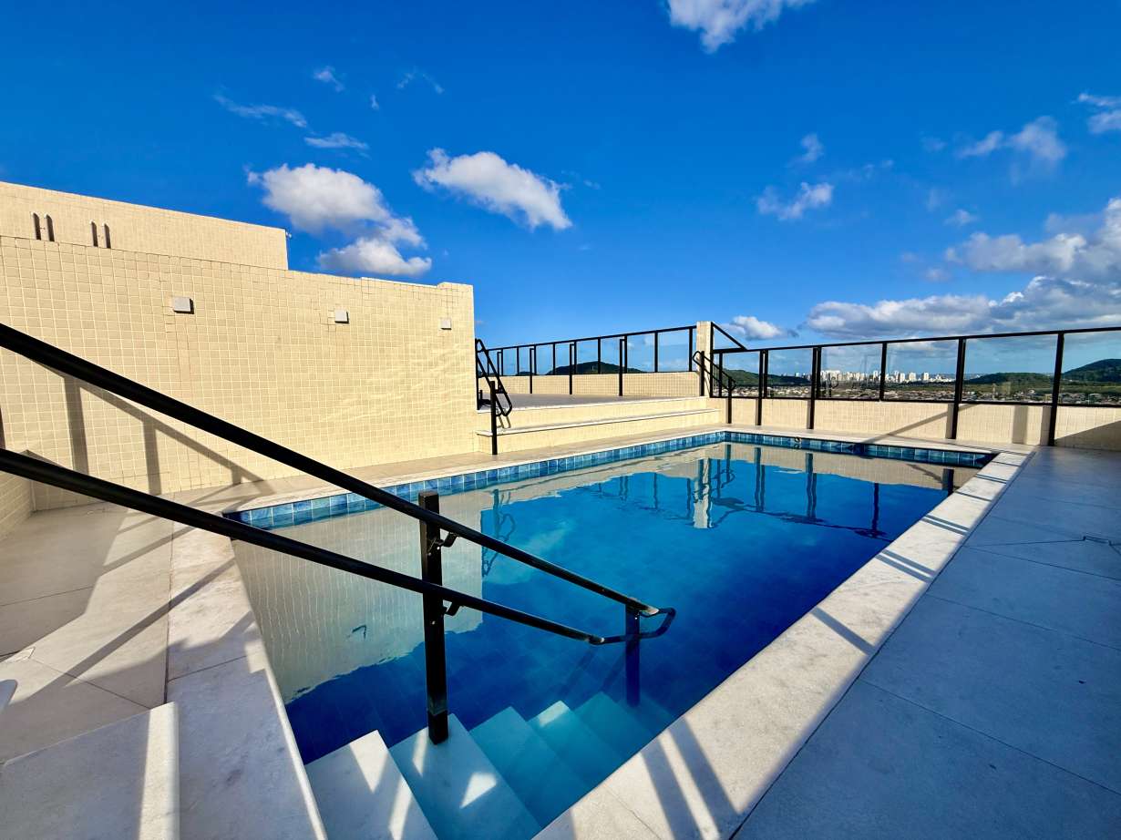 Prédio com piscina, solarium, academia e espaço gourmet.